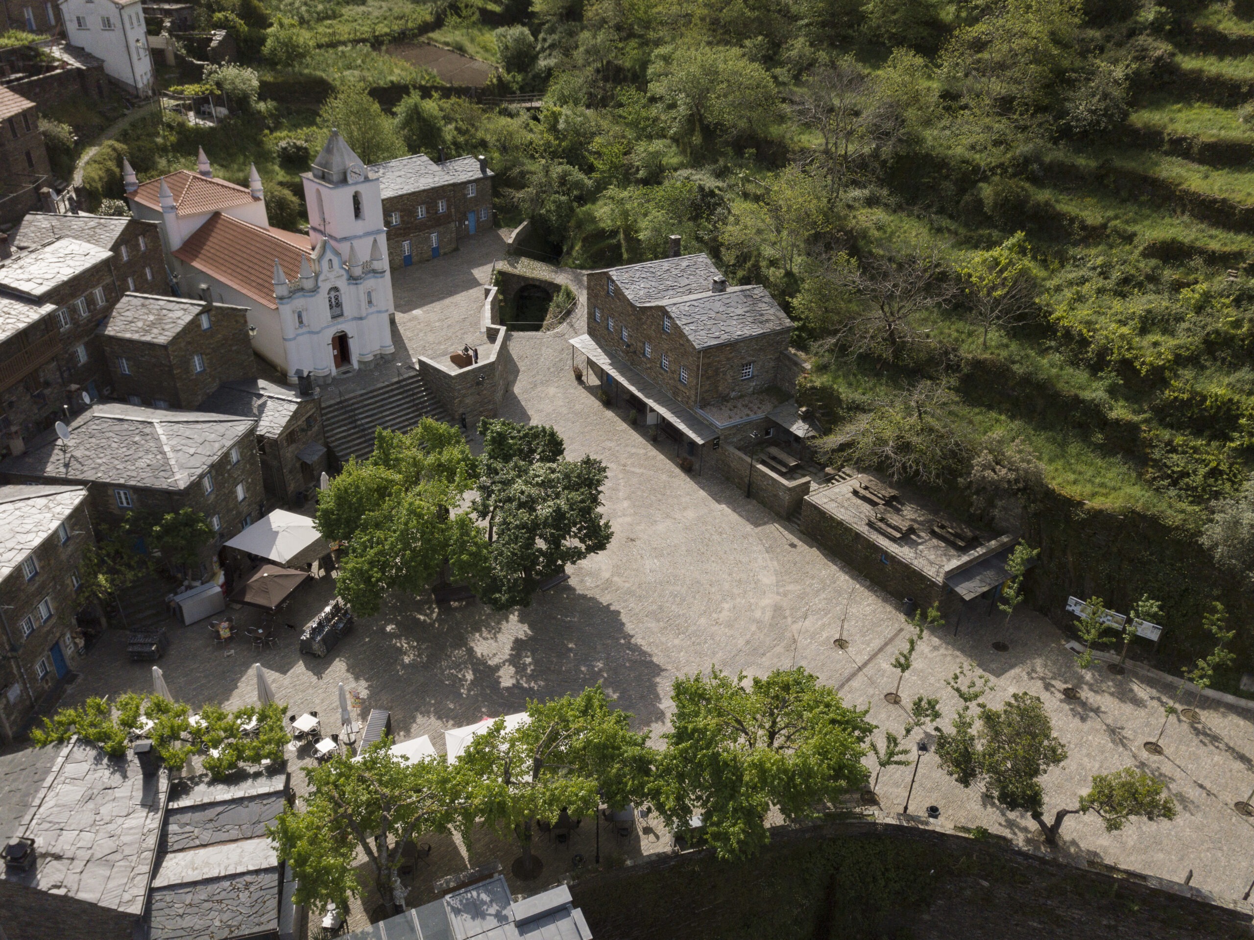 Through careful landscape and architectural interventions, the project enhances the historic character of Piódão while strengthening the role of the square as a shared public space for residents and visitors.